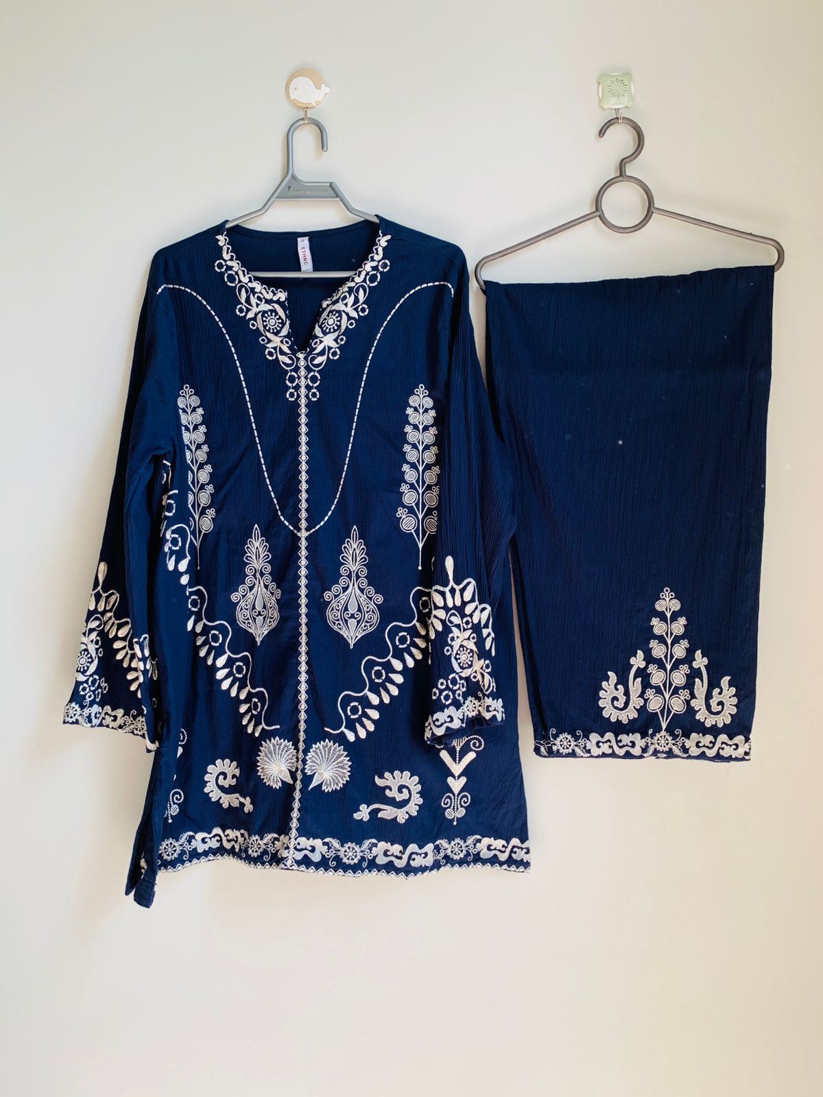 ETHNIC - Embroidered navy blue two-piece (Medium Size - Length: 33 Inches) (Worn only once in MAVI video)